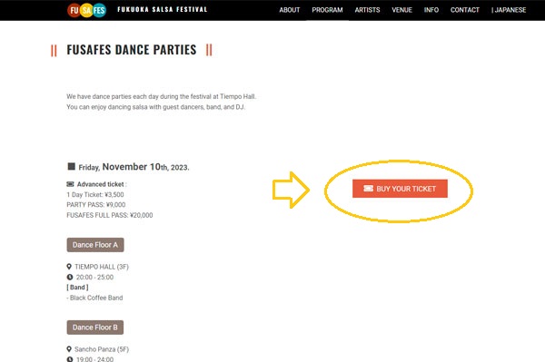 | Nov. 11 (Sat) | ¥3,500 | ¥4,000 | * PASS include: All parties. | * PASS include: All workshops and all parties. | ||