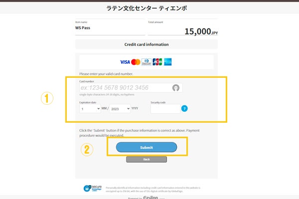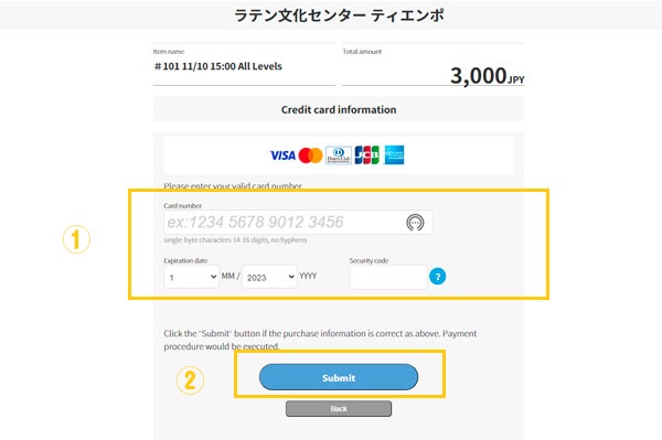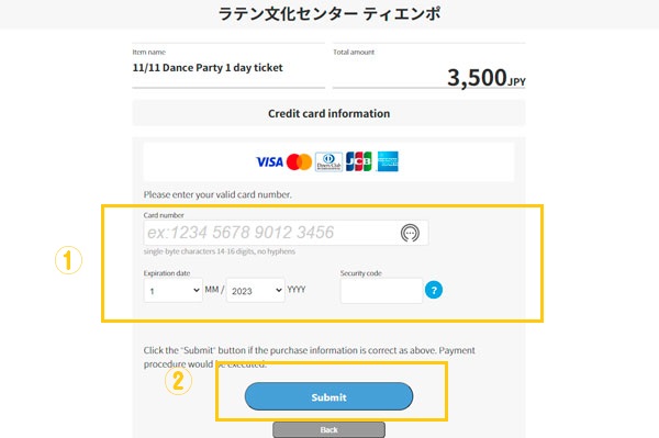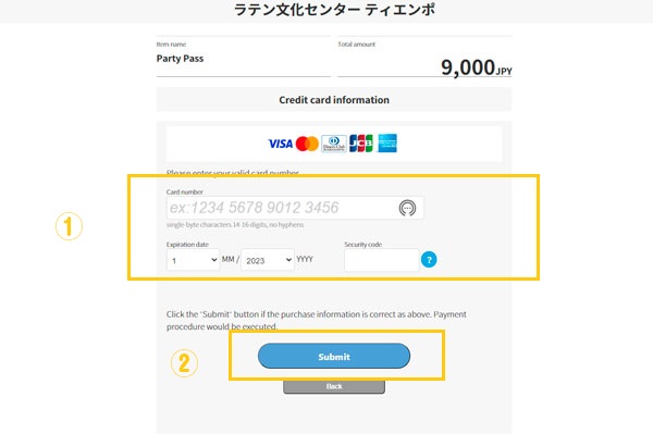 ** If you can not pay with a credit card, please contact us at the following e-mail eventos@tiempo.jp.