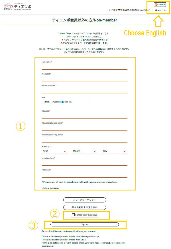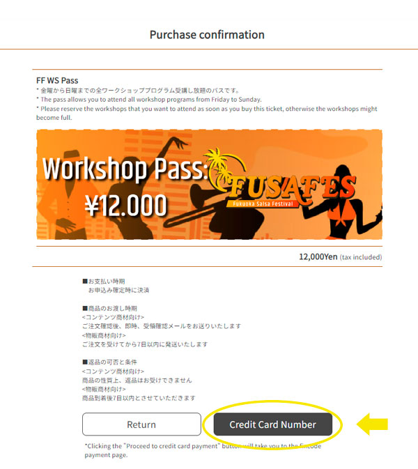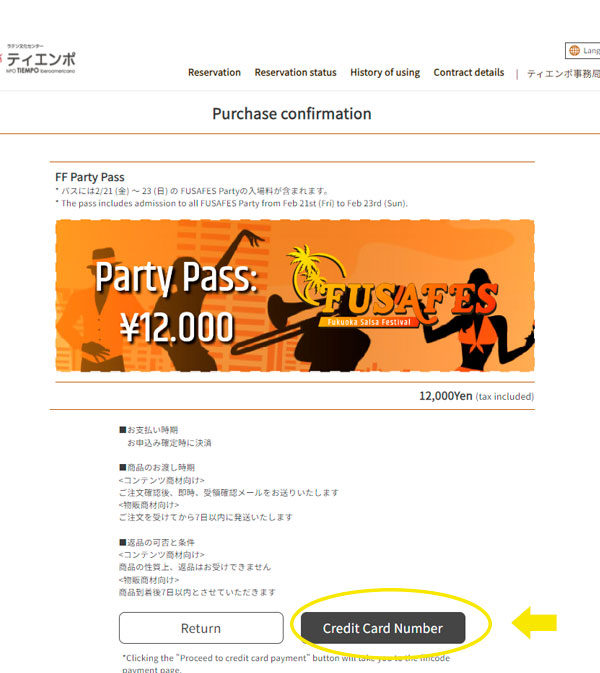 ** If you can not pay with a credit card, please contact us at the following e-mail eventos@tiempo.jp.