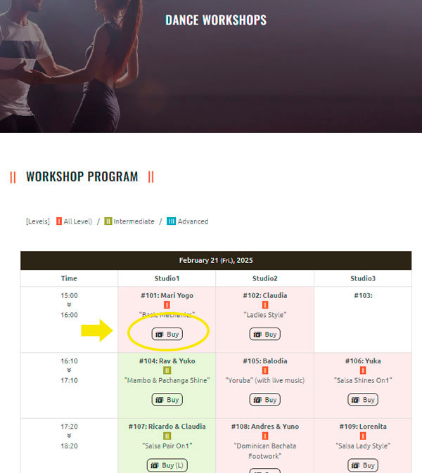 • Once the registration is finished, selected lessons are basically non-changeable. In the unavoidable case, please contact us by email at eventos@tiempo.jp.